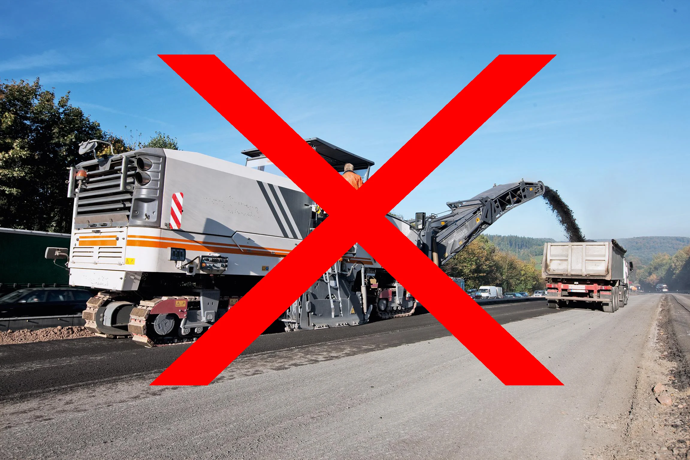Can we eliminate all milling? The answer is NO, as it is needed to remove the potholes as well as other areas that have broken down or exhibit top-down cracks. However, we can eliminate the need to mill down the entire road surface flat which will reduce the time it takes to complete the job. This will reduce the lane closures that are so disruptive to our lives.